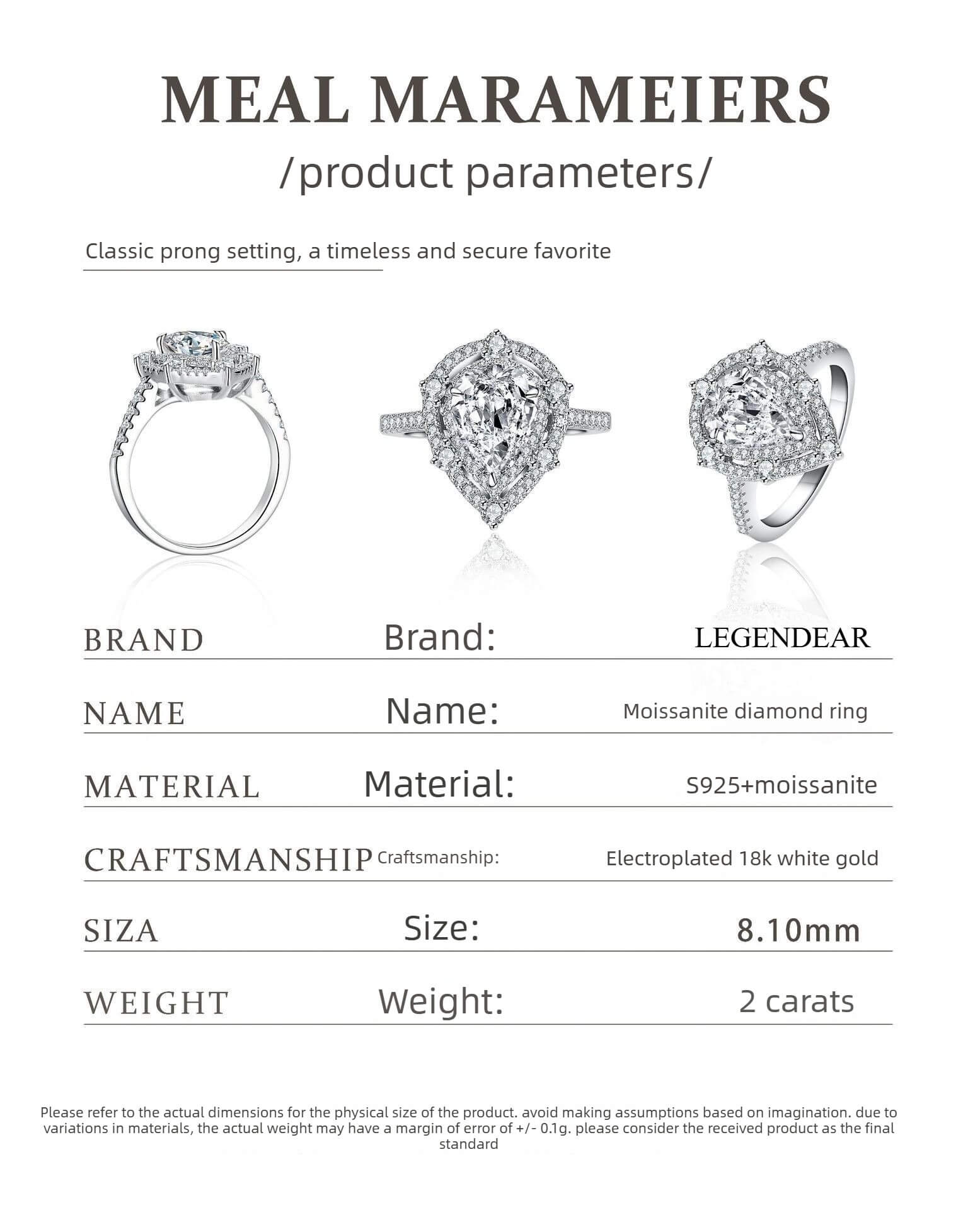 2ct Pear-Shaped Ice-Cut Moissanite Ring for Women | S925 Sterling Silver | Elegant Luxury Jewelry