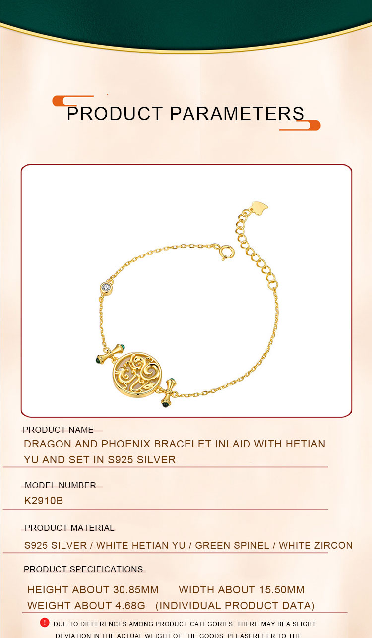 • Product Name: Dragon And Phoenix Bracelet Inlaid with Hetian Yu and Set in S925 Silver