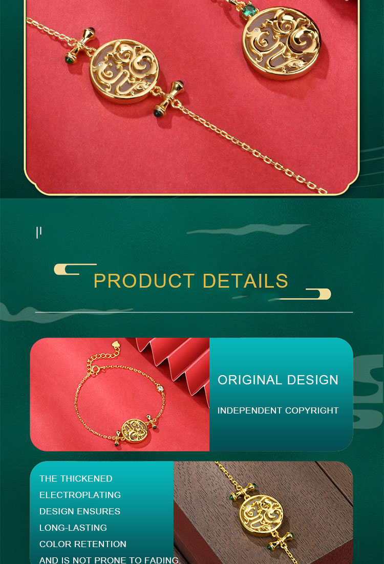 • The combination of the dragon and the phoenix on the bracelet implies a perfect marriage and a long - lasting relationship. symbolizing the hope for a happy union and growing old together. Additionally. the phoenix paired with auspicious clouds represents marital harmony. By incorporating these elements. we hope that the wearer will be constantly accompanied by good fortune and lead a joyous life. The bracelet serves as a vessel to convey these wonderful blessings and accompany people in their daily lives.