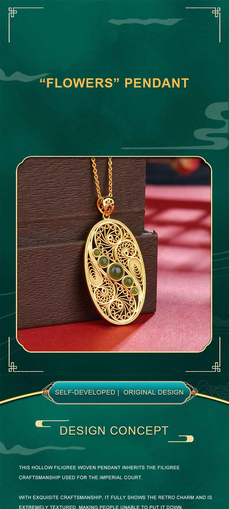 This pendant is a self - developed. original creation. We hold the independent copyright for this unique design. ensuring that you own a one - of - a - kind piece. The design team has poured their creativity and passion into every aspect of the pendant. from the initial concept to the final product. The result is a design that is both innovative and respectful of traditional craftsmanship. setting it apart from mass - produced jewelry.