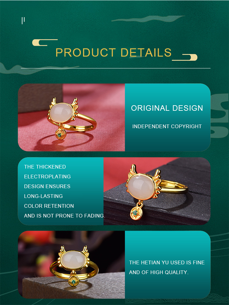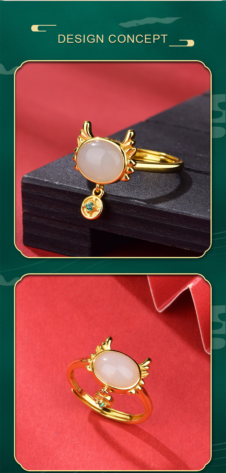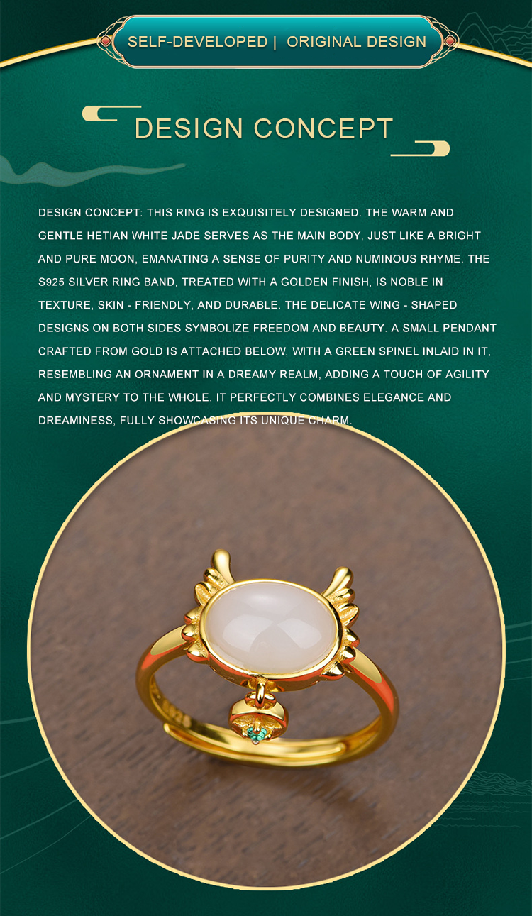 Dive into a world of elegance and dreaminess with our exquisitely designed ring.Crafted with the finest Hetian white jade as the main body. it radiates a pure and numinous vibe. just like a bright moonlight that captivates the soul.